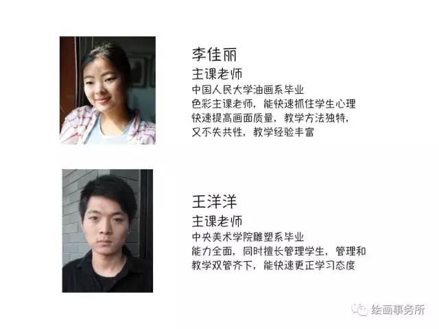 高考时以优异的成绩通过中央美院、清华大学,后在中央美院上学;多幅作品留校并展览;对美术高考考前教学有着丰富的经验和有先进的教学理念;颇受学生的欢迎;